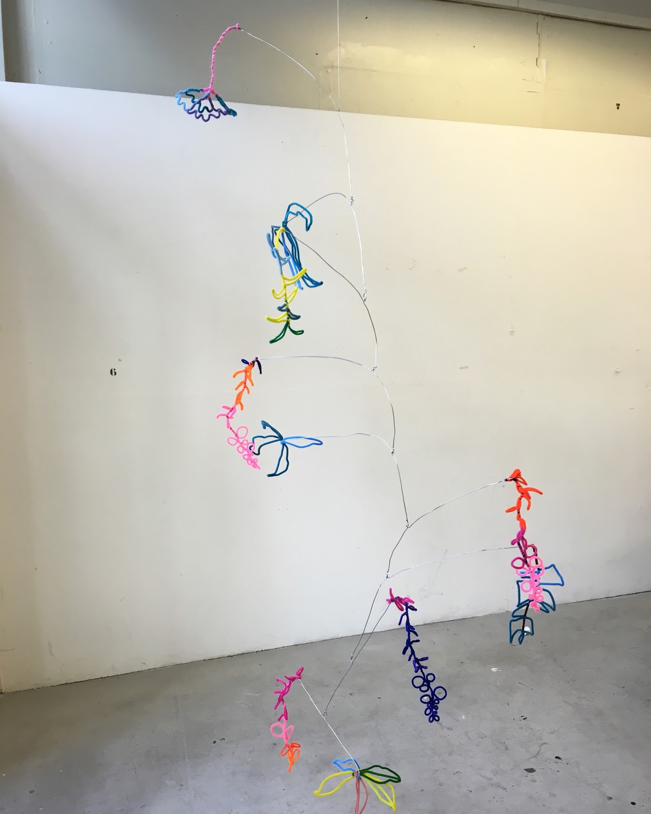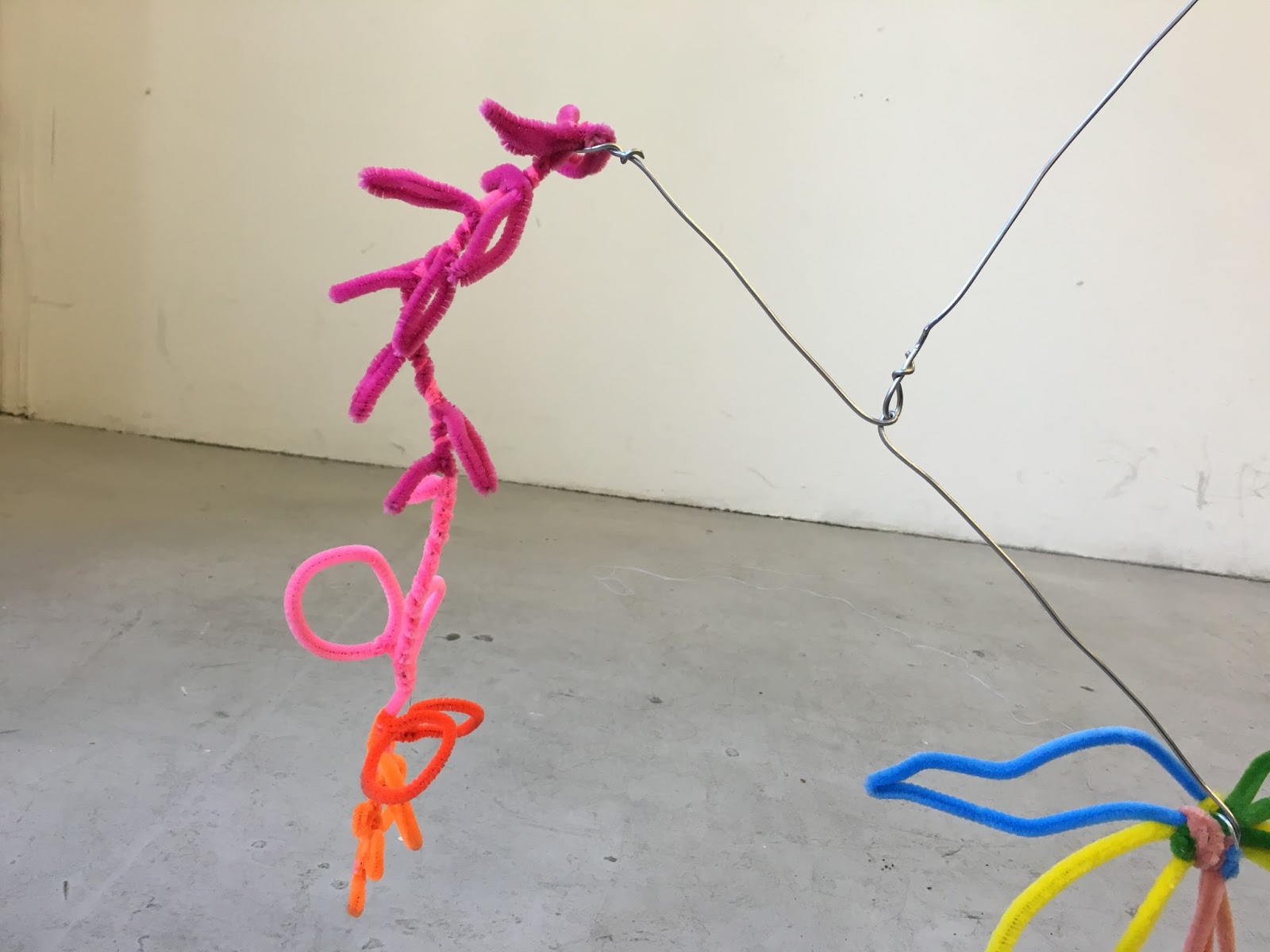 Started to experiment making large-scale wire mobiles using my pipe cleaner shapes and thick wire. I think I need to use even thicker wire, though as the type I'm using still bends with too much weight. I do like how the plant forms move in this experiment though. I will keep going, trying to make mobile structures I am happy with.